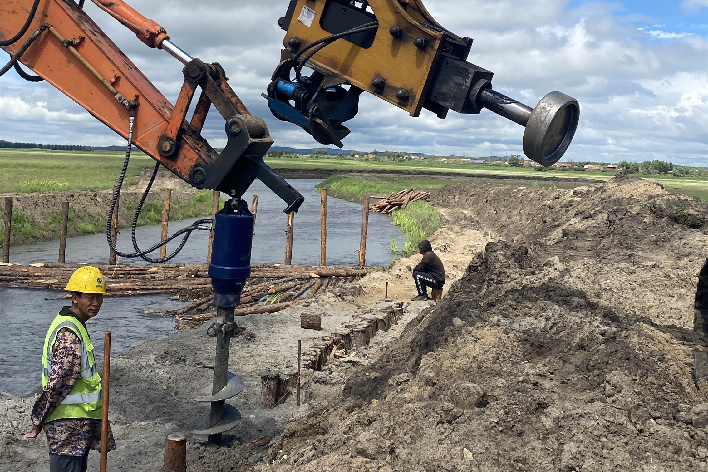 河道打樁木